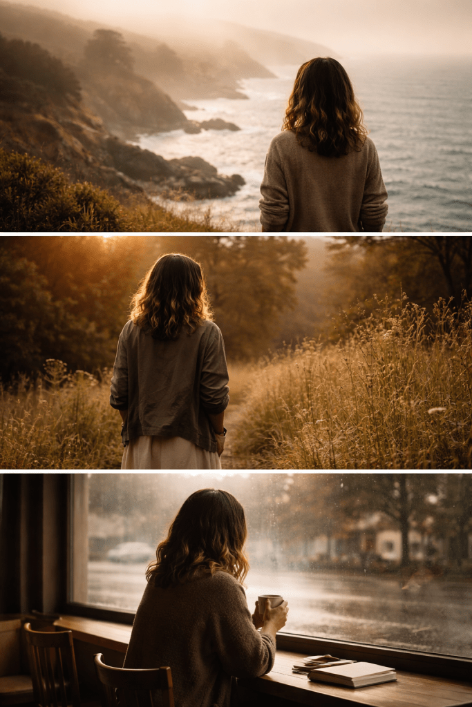 Images throughout this post reflect this season of slowing down. It is a time for grounding and returning to self. Moments of solitude, nature, and softness are highlighted. Choosing peace over pressure is emphasized.